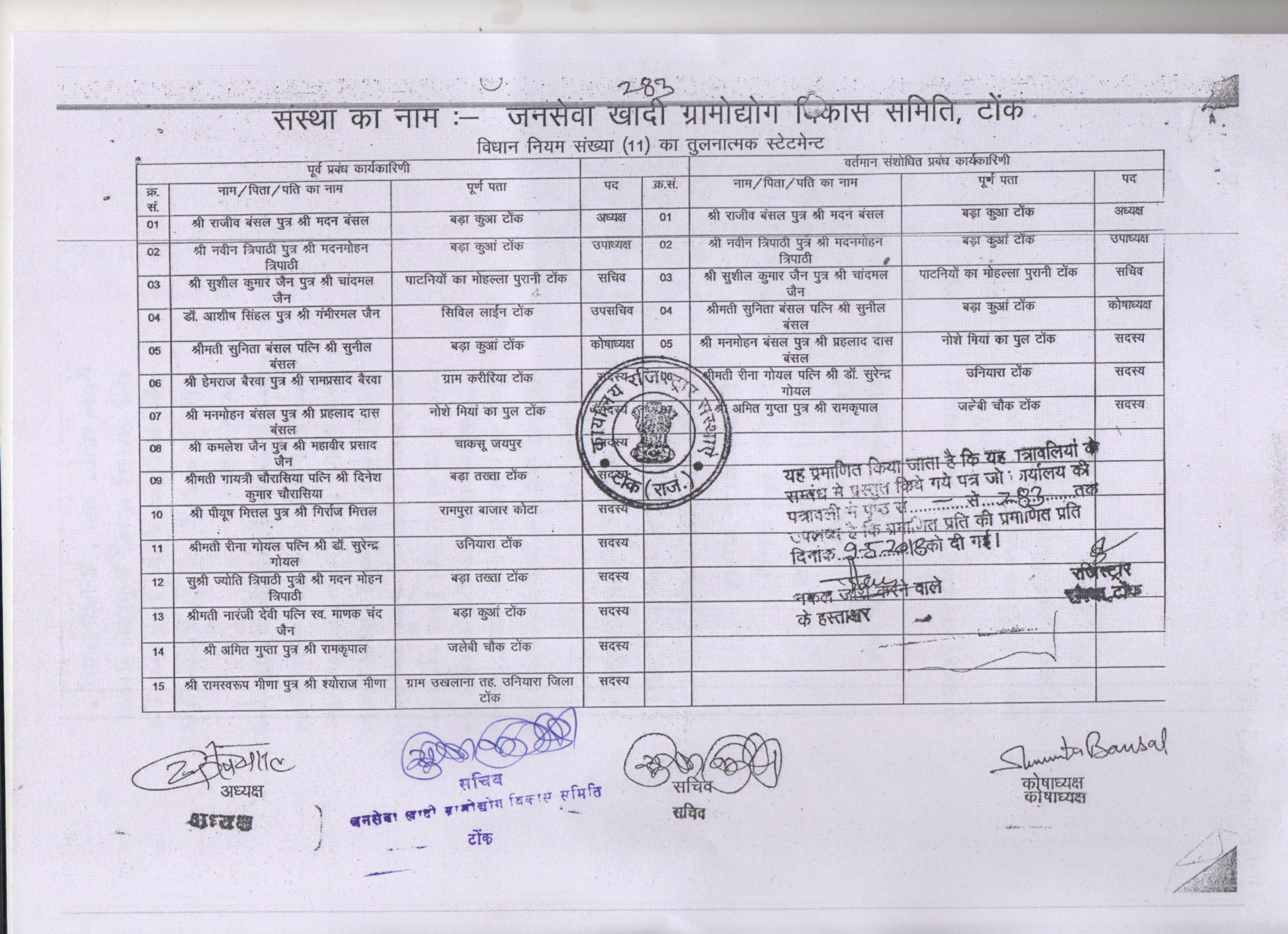 Transfer Certificate